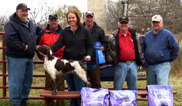 Placement Winner, Kansas Championship (35 starters) 1st, Open Gun Dog (28 starters) 2nd, Open All Age (32 starters) 1st, Open Derby (14 starters) 2nd, Open Derby (14 starters) 3rd, Open Derby (14 starters) 2nd, Open Puppy (8 starters) |